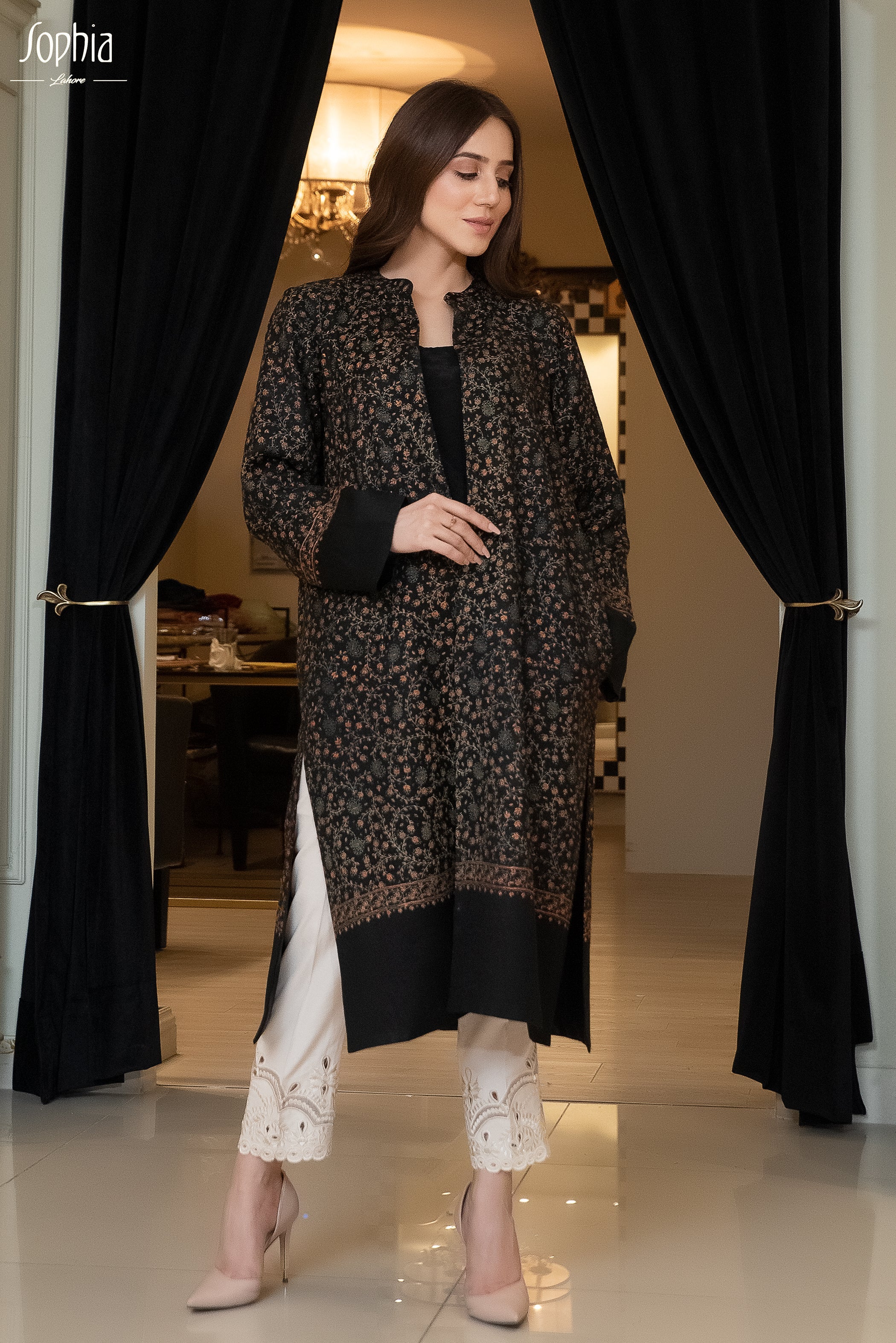 Winter Wear Jackets in warm fabrics of marina and pashmina. Worn over tops or your daily smart wear. They come in printed jaals with slightly embroidered thread work.
